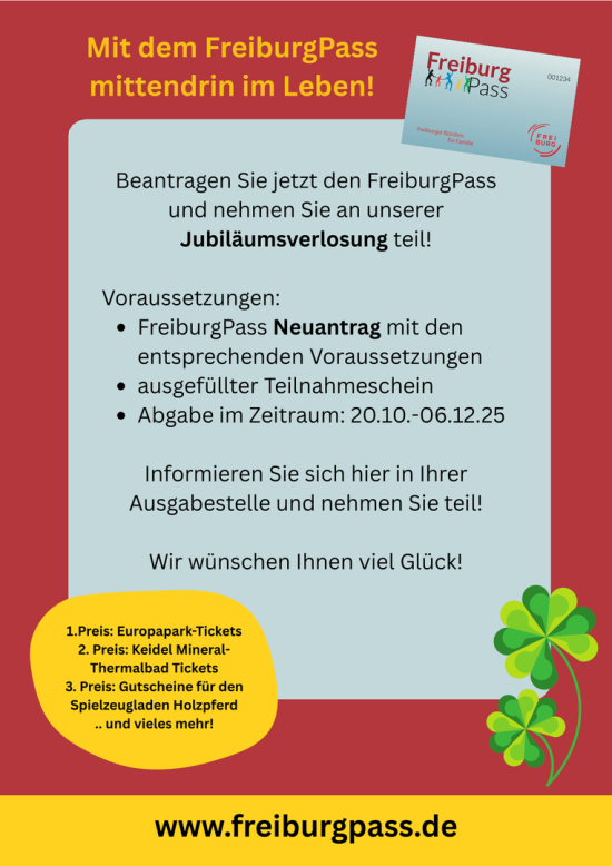 - Familiencard (z.B10 Schwimmbadkarten für 5€ pro Familienmitglied) --> nur in Freiburg , Wir sind Ausgabestelle