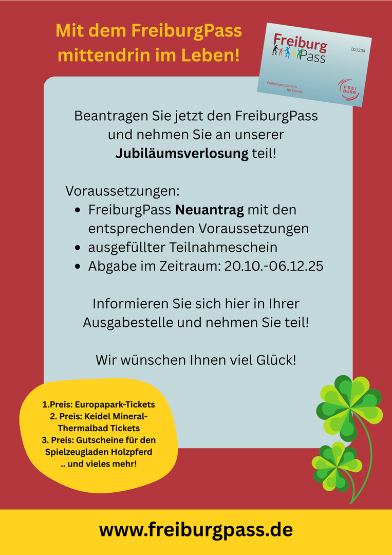 - Freiburgpass (Theaterkarten für 4€, halber Schwimmbadpreis... ) --> nur in Freiburg, Wir sind Ausgabestelle!